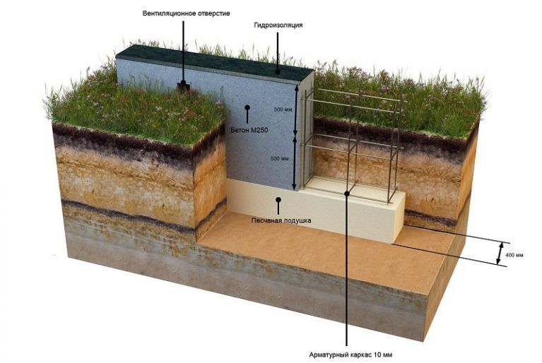 По проекту выкапываются траншеи глубиной 40–70 см по периметру стен.